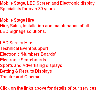 LED Screen Hire     Stage Hire    Public Address Hire    Contact